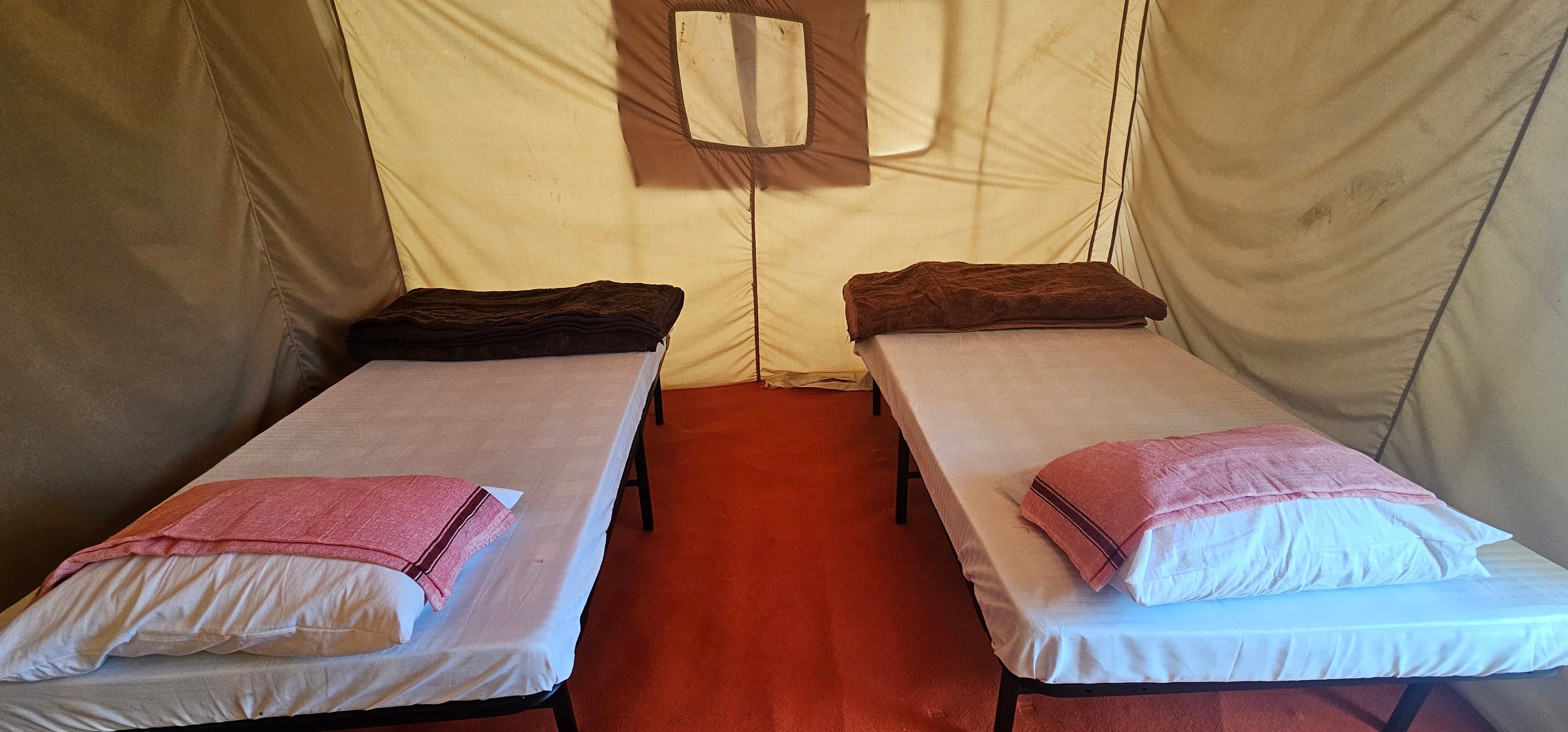 The twin room is best suited for couples, friends, and siblings. It is a comfortable, private tent-room, offering the perfect stay for you as you embark towards, and return from your daily venturing into the Magh Mela grounds.
